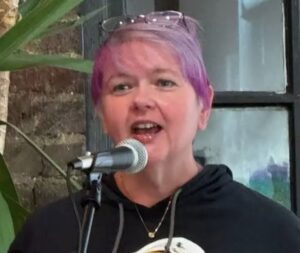 The purple of the roses in my wedding bouquet, which I hadn’t intended to carry because I’m not a flowery girl, but my fiancé kept telling me every bride deserves roses. He bought them for me, so beautiful, and I carried them down the aisle with joy. The purple of my hair which I’ve been wearing for years now, in my 50s, because I make my own decisions these days, like I should have been doing all along.