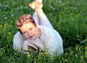 The purple of the roses in my wedding bouquet, which I hadn’t intended to carry because I’m not a flowery girl, but my fiancé kept telling me every bride deserves roses. He bought them for me, so beautiful, and I carried them down the aisle with joy. The purple of my hair which I’ve been wearing for years now, in my 50s, because I make my own decisions these days, like I should have been doing all along.